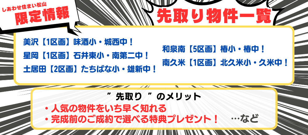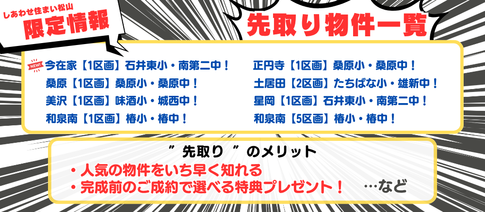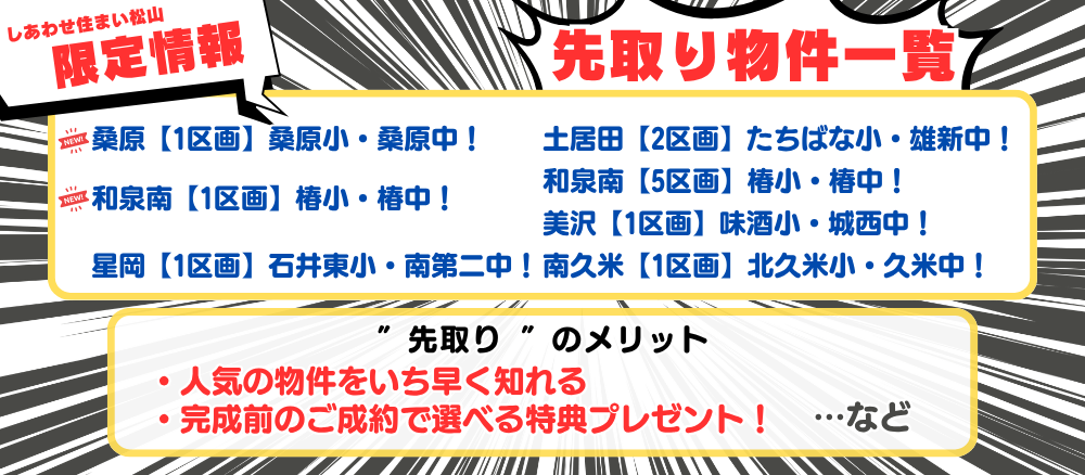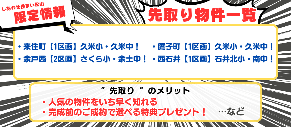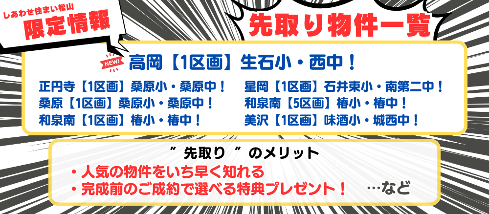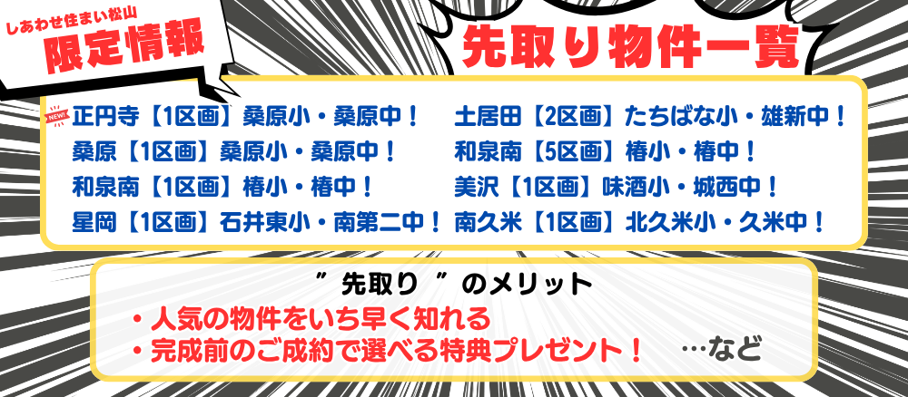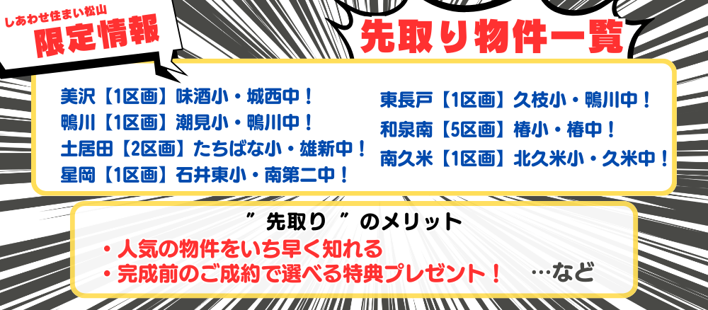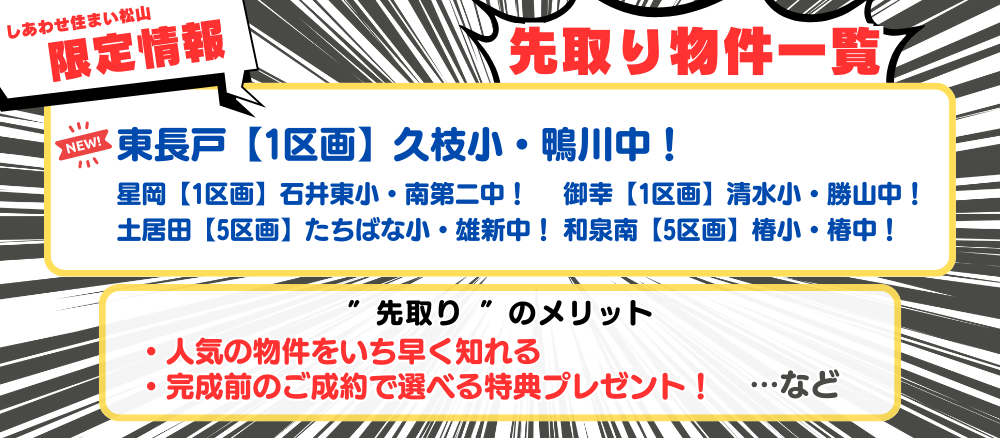詳細につきましては、しあわせ住まい松山までお気軽にお問合せください。