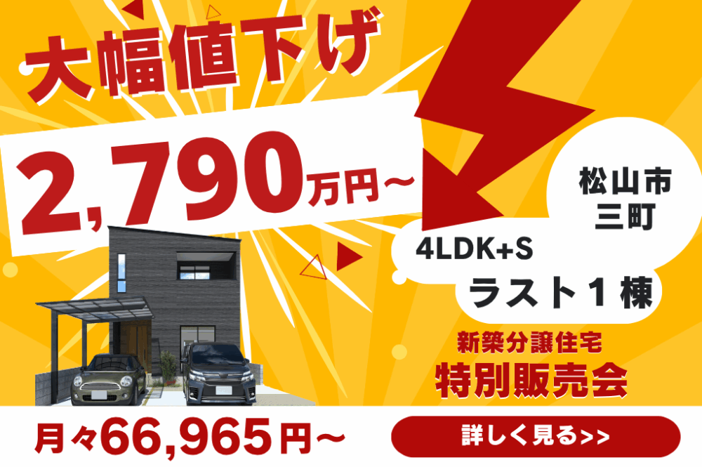 販売価格2,790万円~・月々67,939円~※伊予銀行・変動金利0.8%(R7.11)