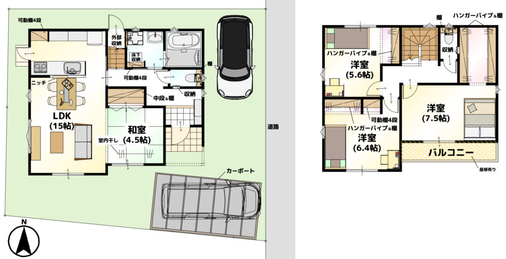 ✅ 全部屋洋室5帖以上で、家族それぞれのプライベート空間を確保🛏️