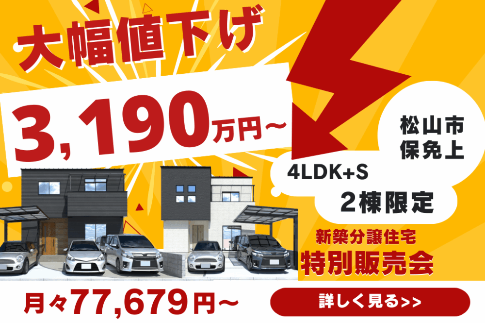 ◆販売価格3,090万円~・月々75,244円~※伊予銀行・変動金利0.8%(R7.12)