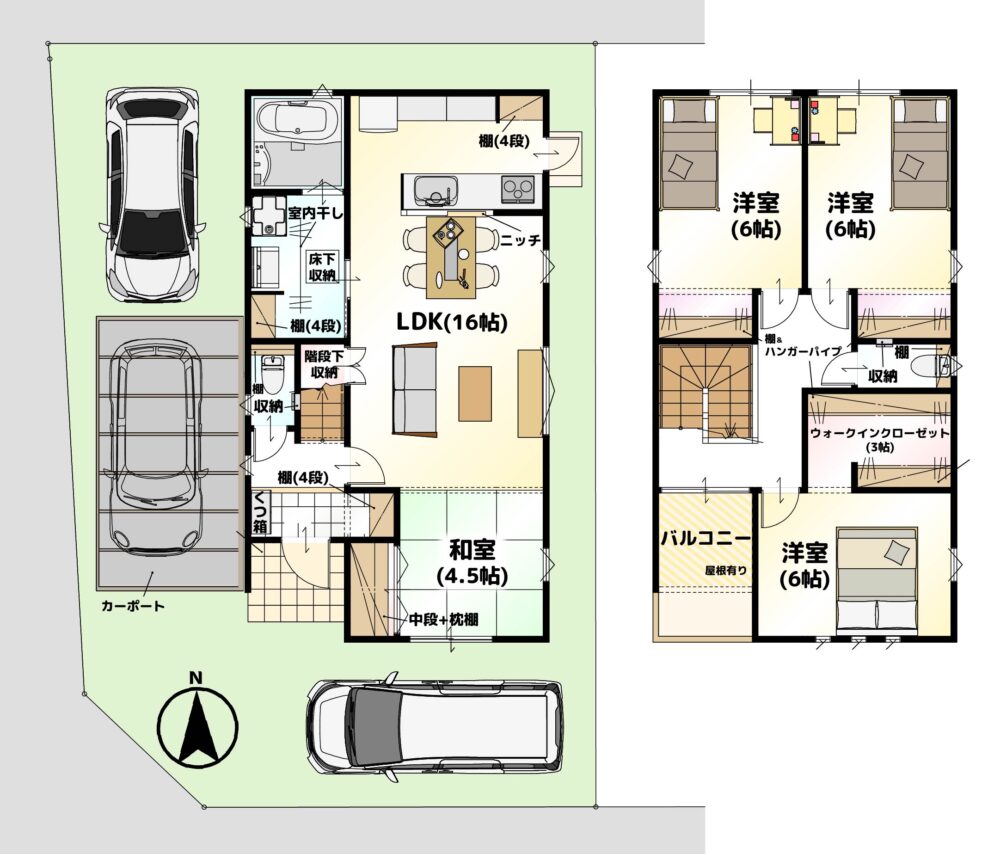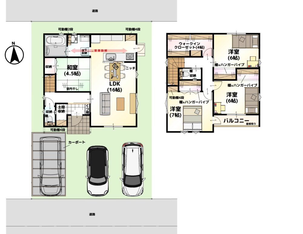 ✅ 全部屋洋室6帖以上で、家族それぞれのプライベート空間を確保🛏️