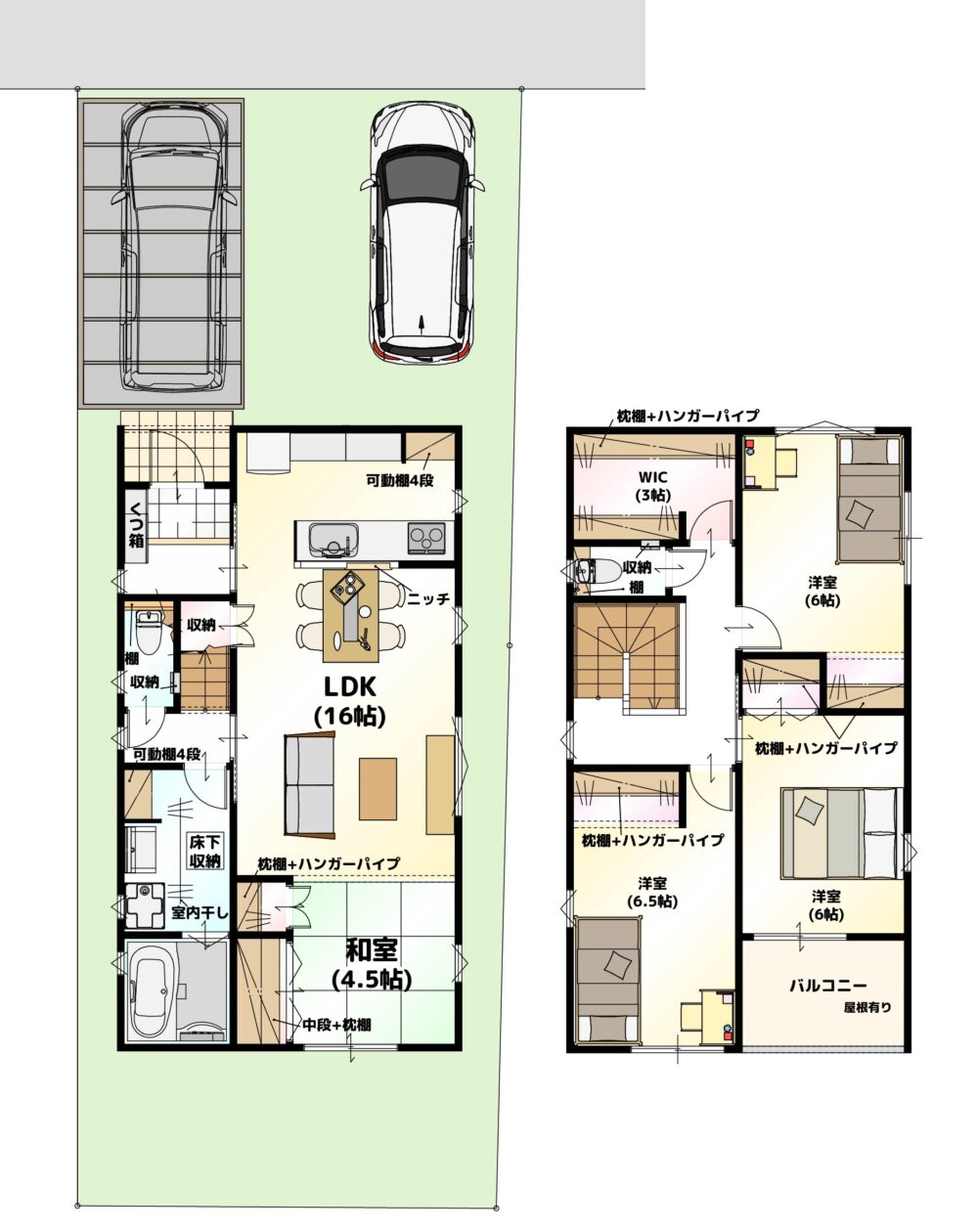 ✅ 全部屋洋室6帖以上で、家族それぞれのプライベート空間を確保🛏️