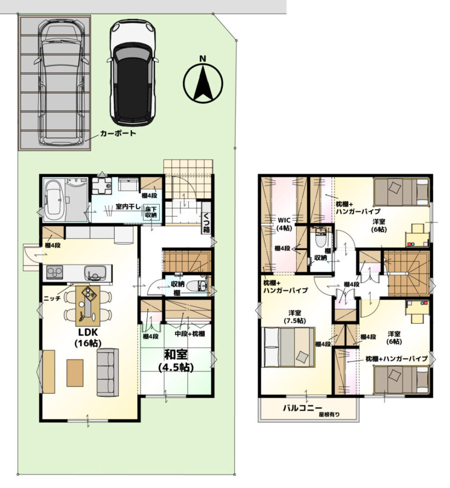 ✅ 4帖の巨大WIC:家族全員の服、季節家電、スーツケースまで1ヶ所に。ショップのような大容量空間で、お出かけ前の準備も楽しく