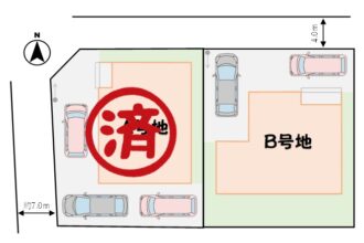 ■所在地/松山市余戸西■交通/伊予鉄バス「柳井田」バス停徒歩5分■都市計画/市街化調整区域■用途地域/無指定■販売戸数/2戸■地目/宅地■建蔽率/70%■容積率/200%■建築工法/木造(軸組工法)■接道/北側4m(公道)■設備/上水道・下水道・オール電化■学区/さくら小・余土中■取引形態/売主