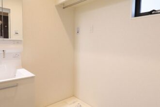 INTERIOR●16帖LDK+4.5帖和室の広さは家族のだんらんはもちろん、お子様のリビング学習にもぴったり●洗面脱衣室には室内物干し完備。アイロン掛けができるカウンター付●3帖の大容量ウォークインクローゼット付●お子様を抱っこしながら簡単に開けられるのが便利なタッチキーが標準装備●ゆったり車が2台停められる駐車スペース