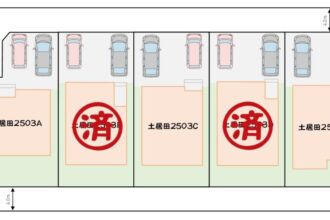 ■所在地/松山市土居田町■交通/伊予鉄道郡中線「土居田駅」徒歩7分、伊予鉄バス「国土交通省前」バス停徒歩5分■用途地域/第一種住居地域■販売戸数/5戸■地目/宅地■建蔽率/60%■容積率/160%■建築工法/木造(軸組工法)■接道/北側4m(開発道路)南側4m(私道)■設備/上水道・浄化槽・オール電化■学区/たちばな小・雄新中■取引形態/売主