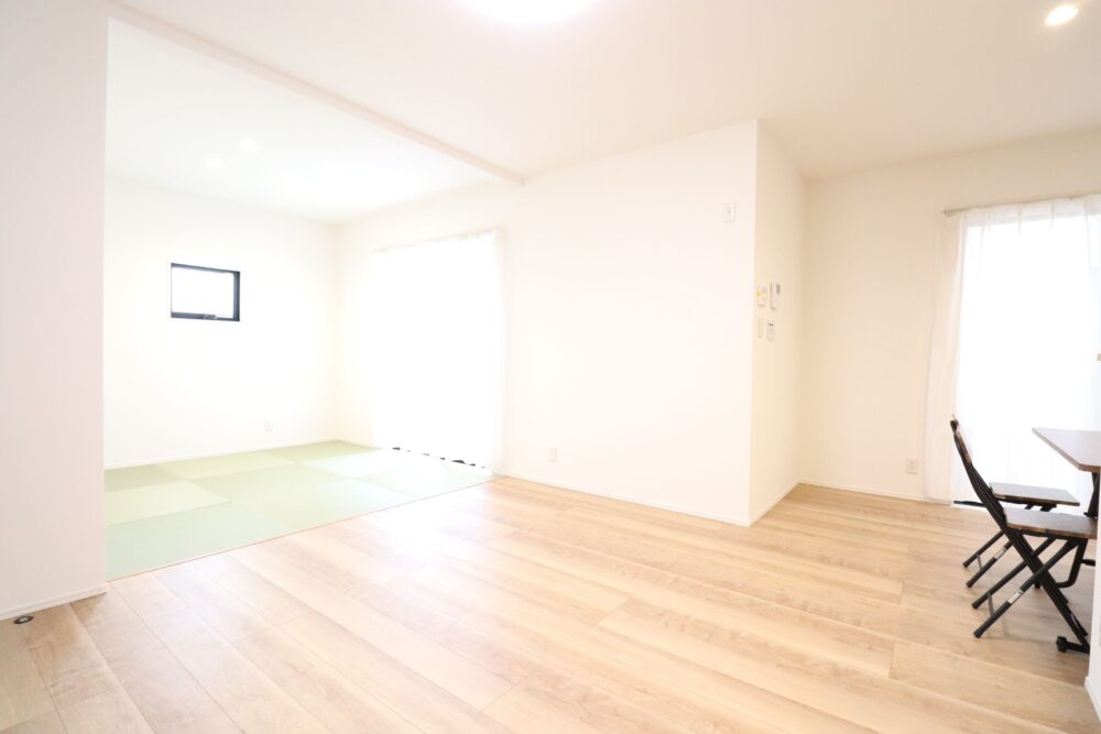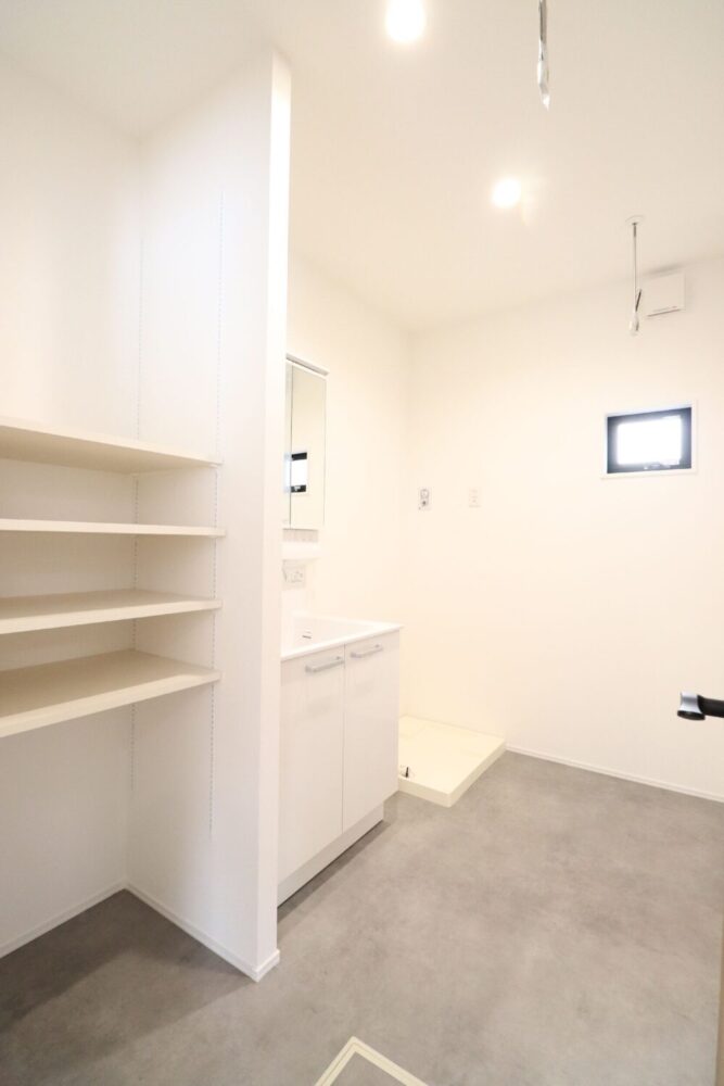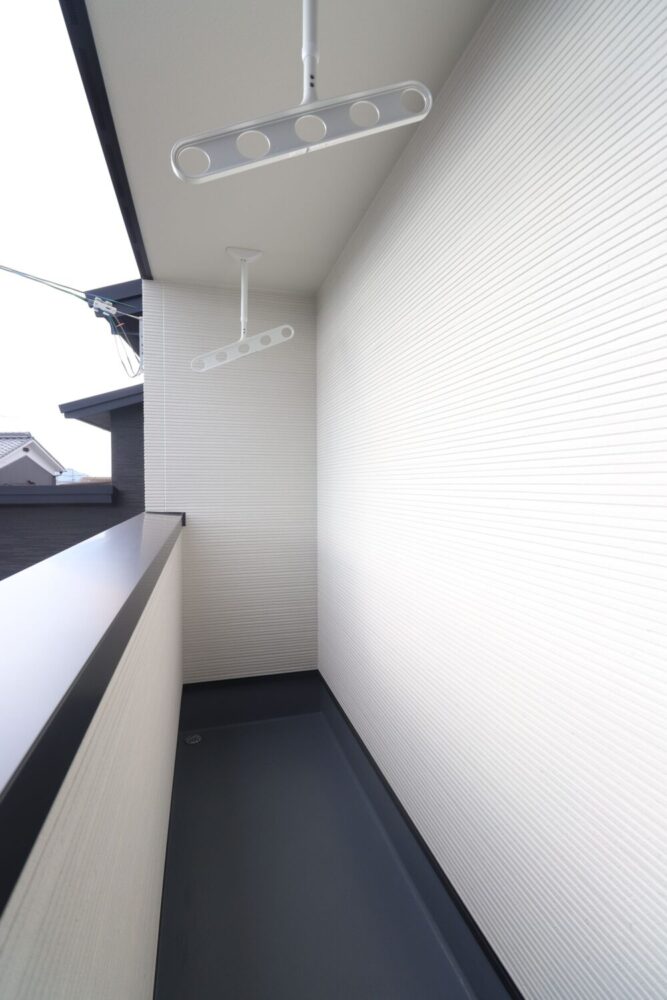 INTERIOR●キッチンから水回り、玄関へと回遊できる間取り●3帖の洗面脱衣室は室内物干しがついており、雨の日のお洗濯も安心●横並びダイニングで、料理の配膳も楽々●衣替えもスムーズにできるファミリークローゼット。洋服以外の物もたくさん収納できる広さ●日当たりの良いバルコニー
