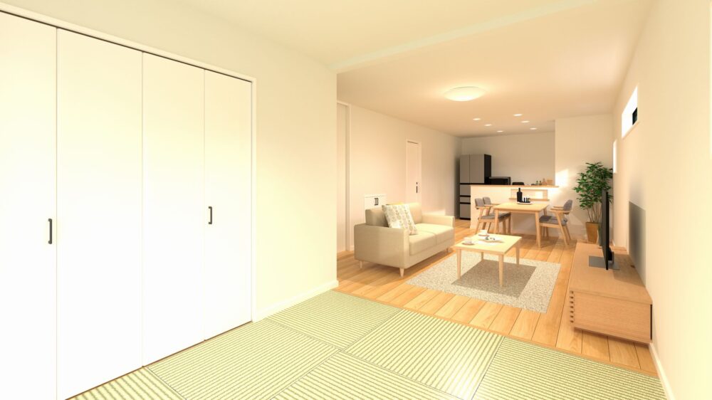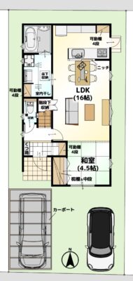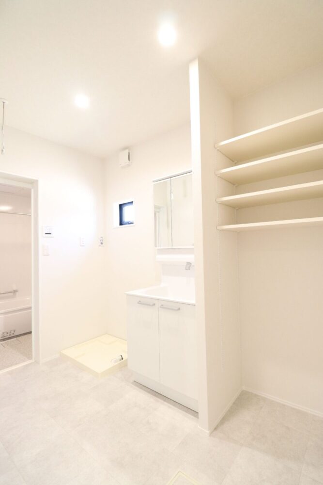 INTERIOR●16帖LDK+4.5帖和室のあるゆったりとした間取り●和室はお子様のお昼寝スペースや遊び場としても使用できます♪●土間収納付き!お子様の外遊びの道具やベビーカーなどもしまえます♪●洗面脱衣室に室内物干しがあり、雨の日も安心●全部屋6帖+収納完備