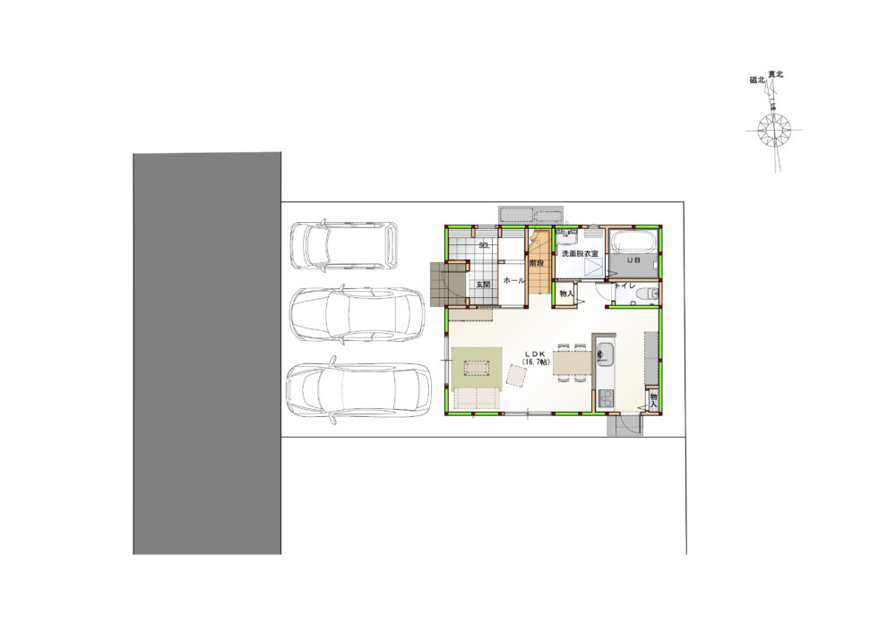 土地・・・日当りの良さ、車の止めやすさ、周辺環境など、立地もこだわっています。